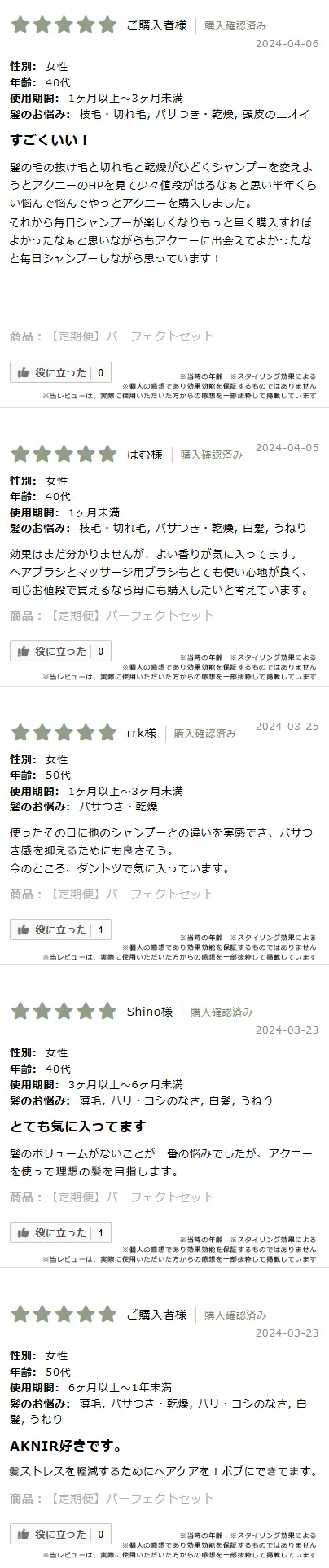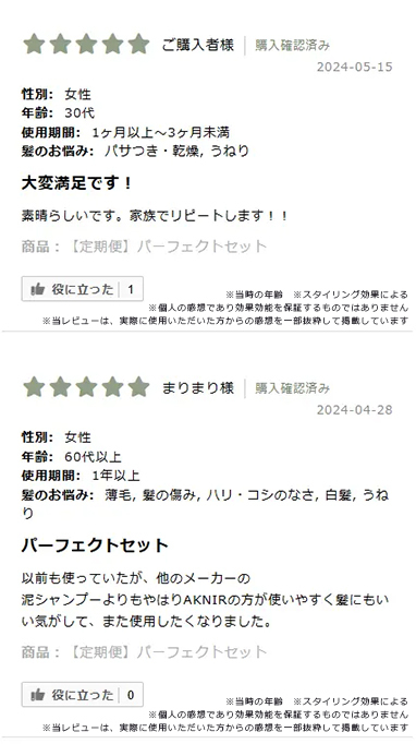 ※AKNIR公式サイトレビューよりご好評いただいたお客様の声を一部抜粋